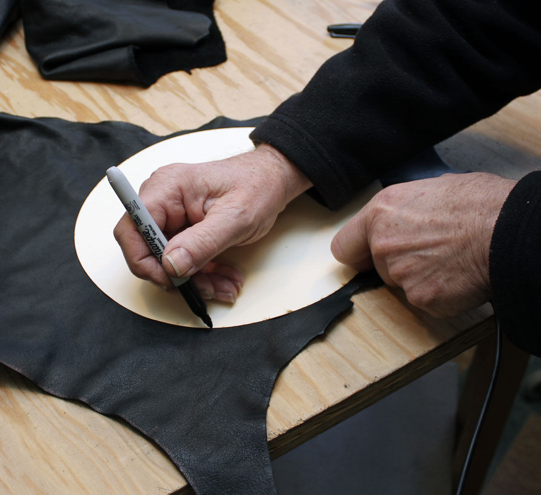 In order to make the top half of the hat hold its shape and not be floppy I decided to reinforce the top. First I cut out a piece of chipboard the same size and shape as the leather top. You can use chipboard from a legal pad for this, after removing all the paper.